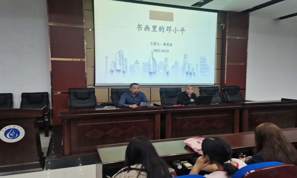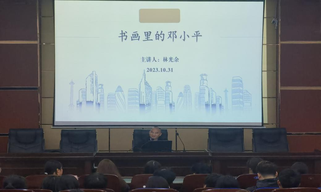 10月31日晚七点,马克思主义学院名师工作室负责人林光余在滨江校区明德楼希贤厅作《书画里的邓小平》专题讲座。讲座由马克思主义学院院长石乾福主持,马克思主义学院部分教师、艺术学院部分教师及全体大一新生共计200余人参加。