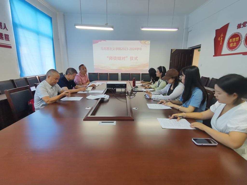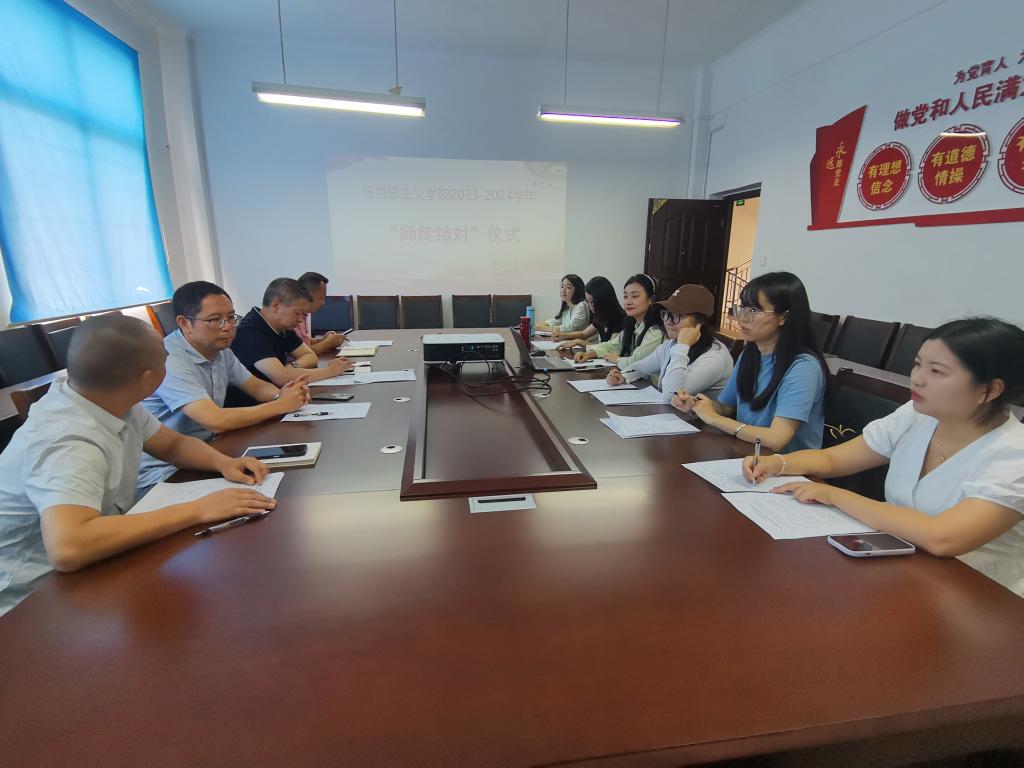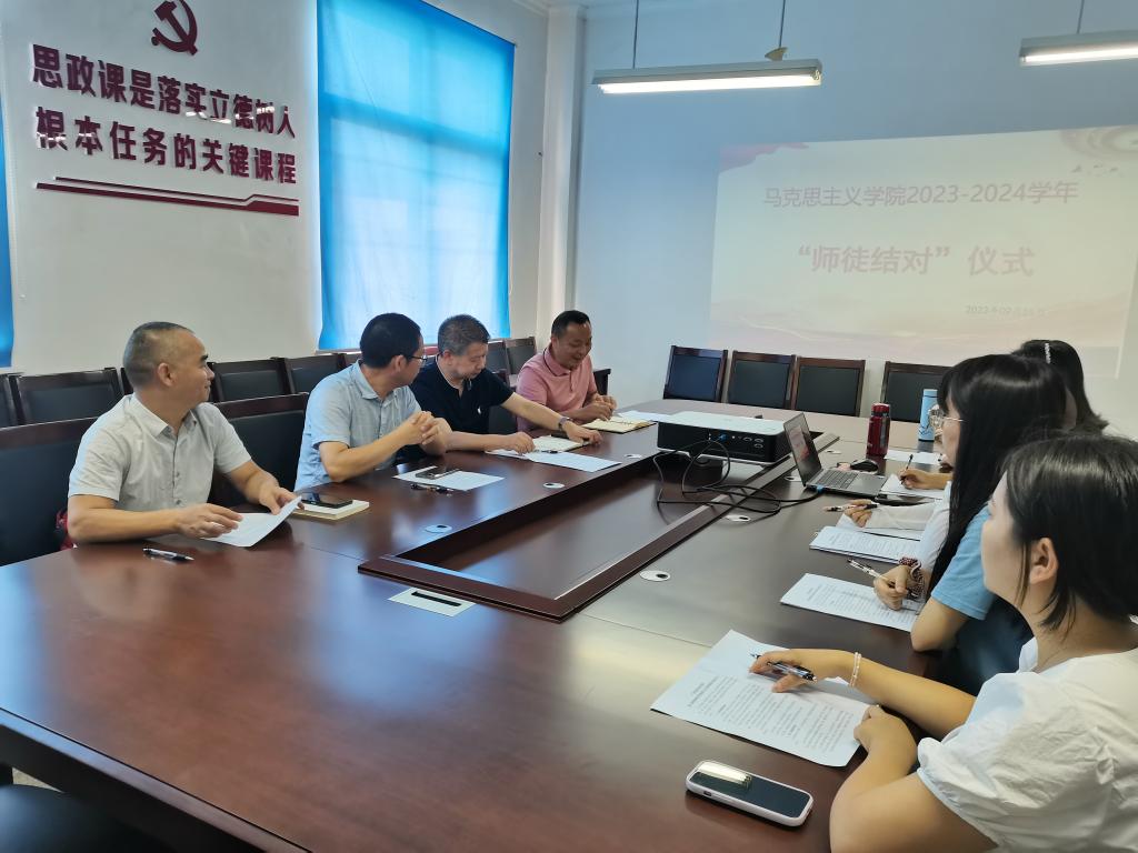 为加快新入职教师成长步伐,发挥好经验丰富老教师“传、帮、带”作用,继承好优良传统,落实好师资队伍建设,9月15日上午10点,马克思主义学院组织指导教师和新入职教师在春晖楼五楼会议室举行了2023年度“师徒结对”仪式。会议由院长石乾福主持,全体指导教师和新入职教师参加了本次仪式。