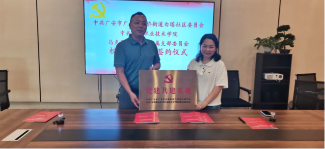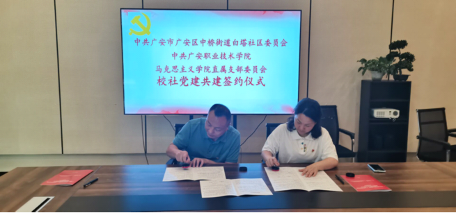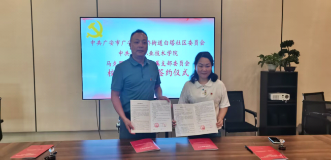 为深入贯彻落实习总书记系列讲话精神,进一步探索创新党建工作,加强支部合作,共同促进双方党建工作健康发展,全面开展基层党组织结对共建活动,着力构建基层党建工作新格局,7月1日,中共广安职业技术学院马克思主义学院直属支部委员会与中共广安市广安区中桥街道白塔社区委员会正式签订校社党建共建协议书。