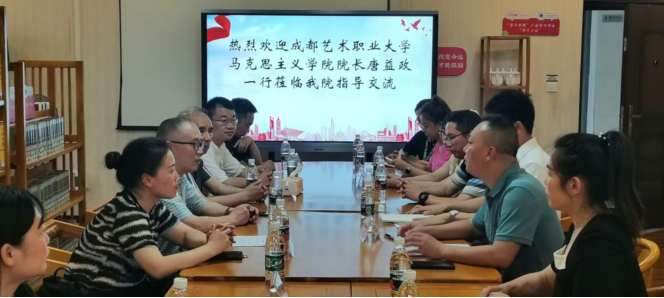 7月14日下午,成都艺术职业大学马克思主义学院院长唐益政一行18人到我院指导交流。马克思主义学院直属党支部书记、院长石乾福,校党政办副主任周泽南,林光余、杨进军、闫泓竹等马院部分思政课教老师陪同校园参观并在思源楼601进行了座谈交流,会议由院长石乾福主持。