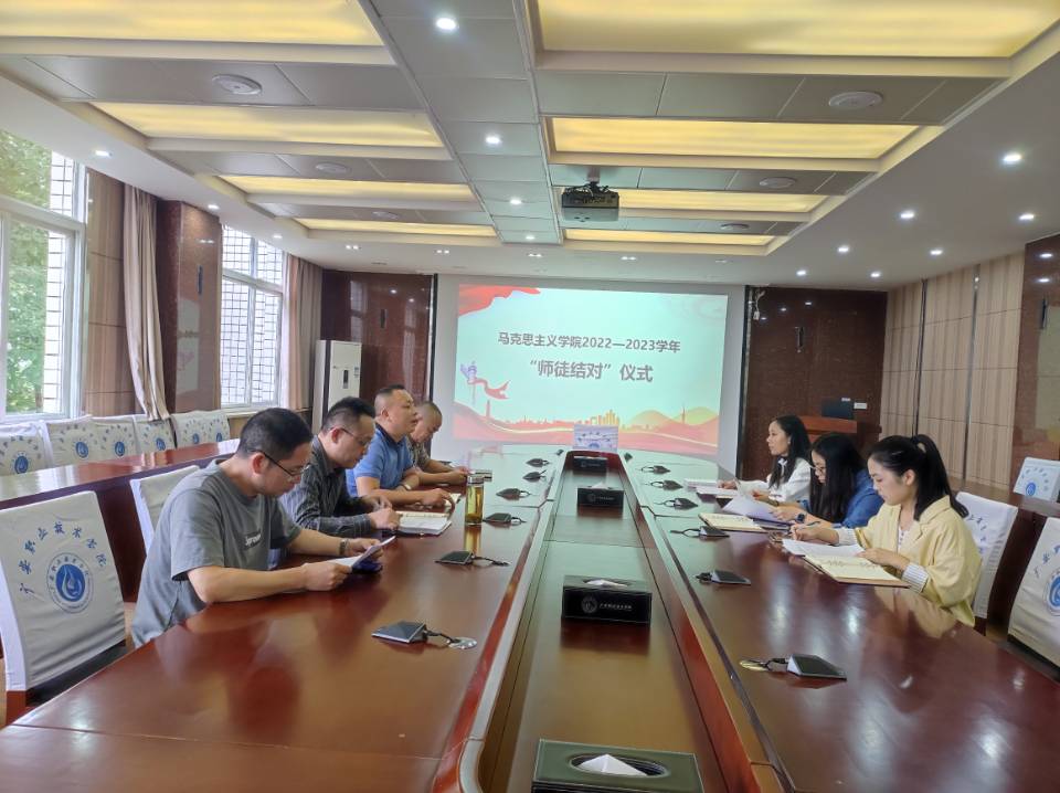 为帮助新入职教师成长和发展,持续发扬学院优秀教师的“传、帮、带”作用,落实好师资队伍建设,9月23日下午3点,马克思主义学院组织指导教师和新入职教师在春晖楼四楼会议室举行了2022年度“师徒结对”仪式,会议由院长石乾福主持,全体指导教师和新入职教师参加了本次仪式。