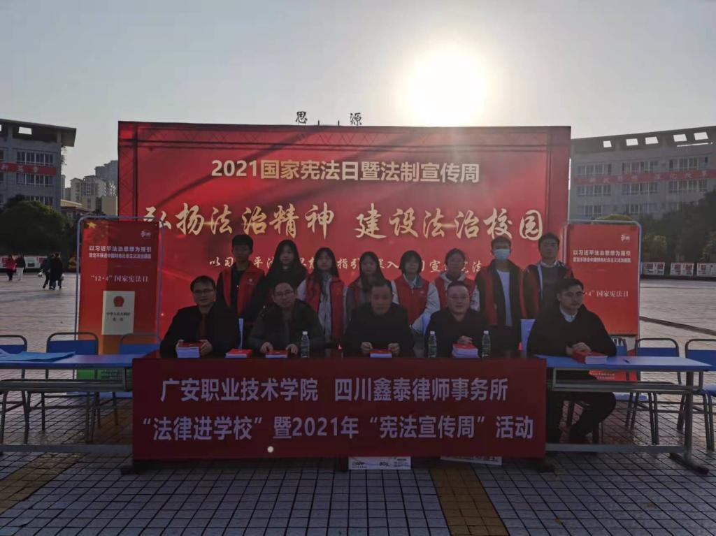 为进一步弘扬宪法精神,增强师生法制观念,提高法律意识,在校营造学习宪法、尊崇宪法、宣传宪法、维护宪法、运用宪法的浓厚氛围,根据学校安排,马克思主义学院与四川鑫泰律师事务所携手启动以“习近平法治思想为指引,深入学习宣传宪法”为主题的“法律进校园,我们在行动”宪法宣传周活动。
