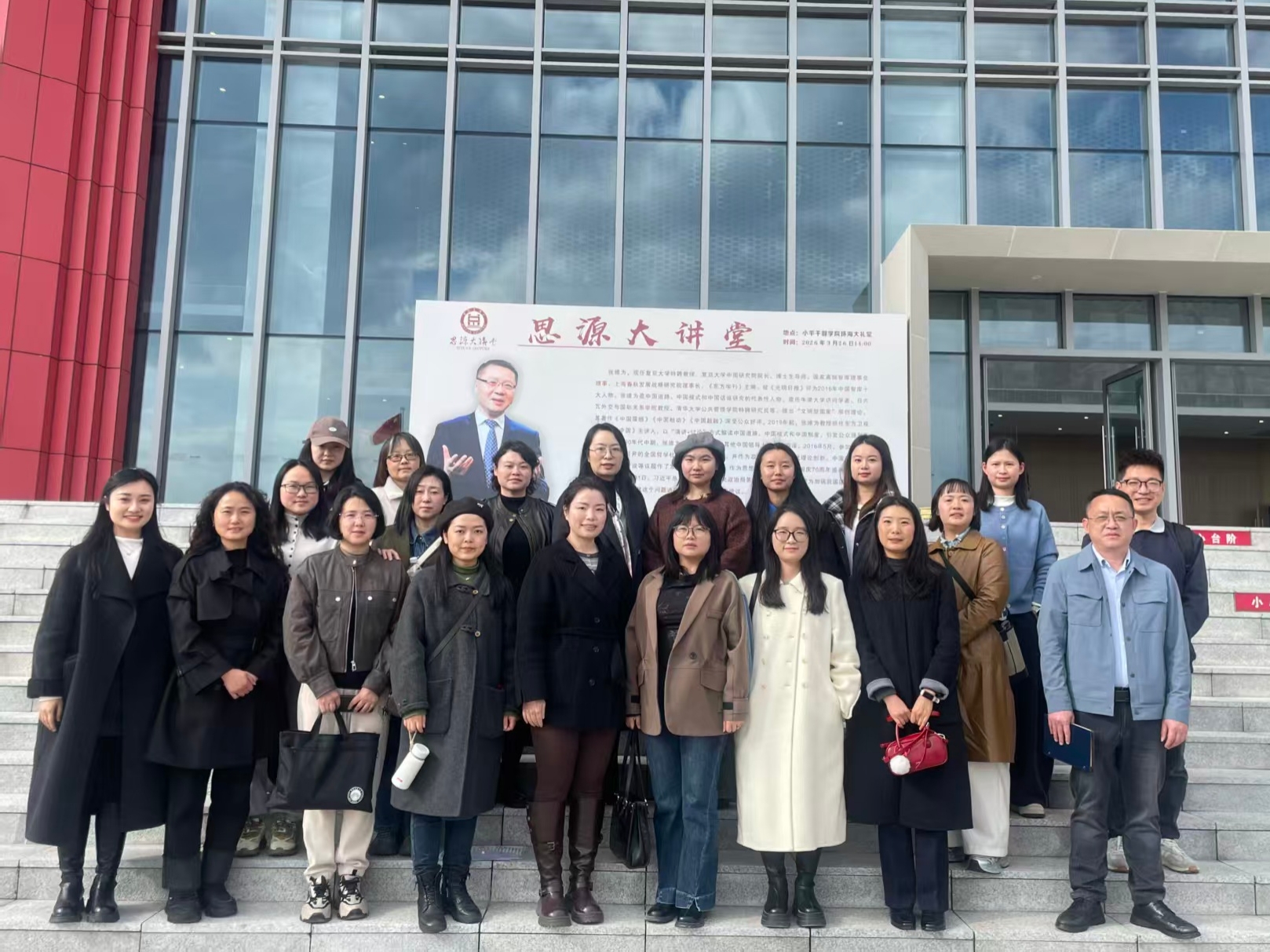 为深化思政课教学研究,增强思政课教师理论素养,提升思政课教学的理论深度与历史厚度,3月26日下午,马克思主义学院组织全体教师赴小平干部学院参加2026年第一期“思源大讲堂”专题讲座,开展集体备课研修活动。