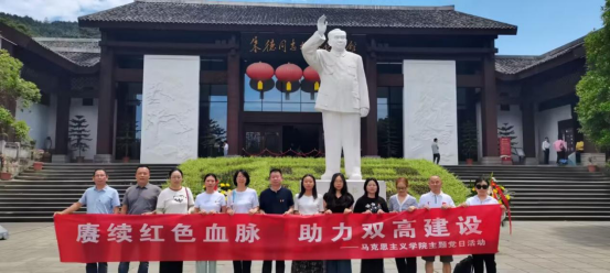 2023年7月7日,马克思主义学院党员教师在朱德逝世47周年之际走进朱德故居,开展了“赓续红色血脉助力双高建设”主题党日活动,追昔老一辈无产阶级革命家的峥嵘岁月,赓续革命薪火,传承革命精神,激发教师助力学校高质量发展热情和动力。